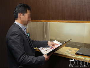 受付所に到着しましたら、お写真で治療員を選び、コース料金のお支払いを済ませていただきます。